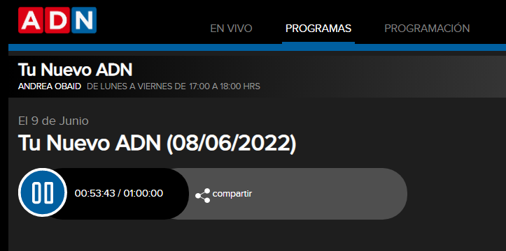DetallesAndrea Obaid conversó con nuestra directora Isabel Cartajena en el el Programa Tu Nuevo ADN. Revisa la entrevista, desde el minuto 0:35:45 hasta 0:51:15. Escucha Tu Nuevo ADN (08/06/2022) en Radio ADN